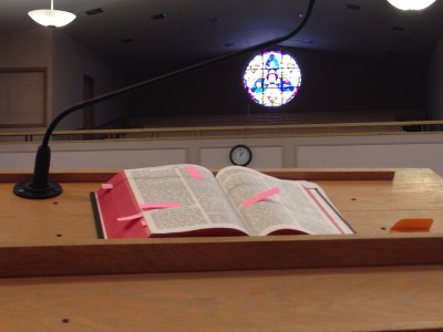 This is my Bible. This is what it looked like sitting in the pulpit during worship yesterday. It caught my attention in the middle of worship. In a service of worship where I — as the pastor — actually got to worship. That almost never happens. I’m too worried about making things happen to make enough room for my heart and mind to worship, but it happened yesterday. I actually got to worship.