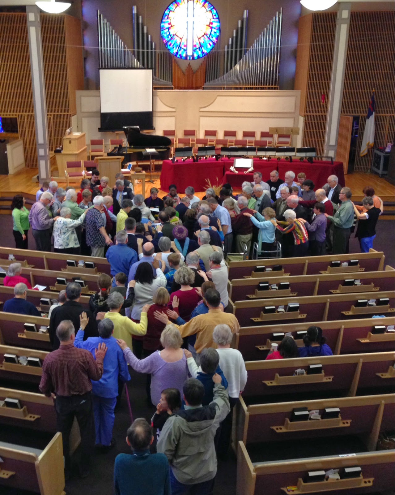 On Sunday, we said goodbye to two wonderful people who have been such a blessing to our church for 40 years. They are moving into assisted living outside of our community — and he let me indulge in the blessing of words. Using the liturgy that I have used each and every time I have left for a new ministry, we spoke the words of change. It was as powerful as it looks in the photo.
